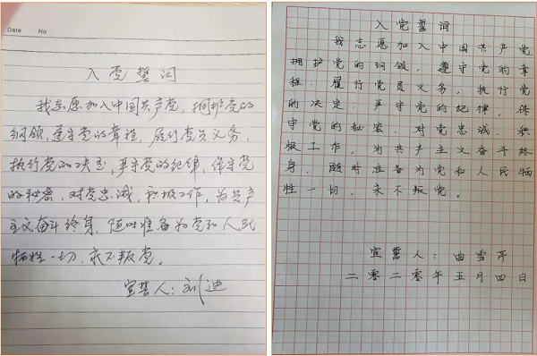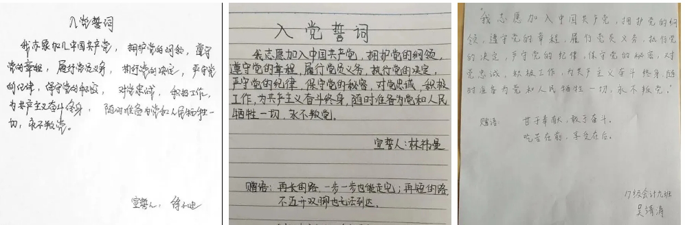 会计系党员老师、学生预备党员书写入党誓词