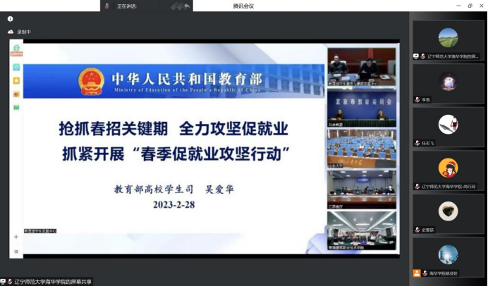 2月28日下午,教育部召开2023届全国普通高校毕业生就业工作第二次调度视频会议,教育部高校学生司司长孙海波、副司长吴爱华出席会议并讲话。我校在弘毅楼三楼会议室设立分会场,副院长田焱、就业指导中心全体成员、各院系就业工作领导小组全体成员及2023届全体毕业班辅导员等线上线下参加会议。