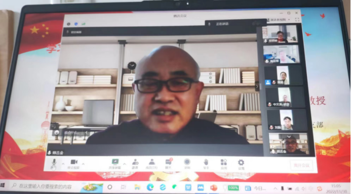 为深入学习贯彻落实习近平总书记在报告中的重要指示精神,将学习活动持续引向深入,11月30日中文系党支部邀请学校理论宣讲团成员、思政部师吉金教授通过腾讯会议的方式作了题为《建设具有强大凝聚力和引领力的社会主义意识形态》的主题宣讲,拉开了中文系学习党的二十大精神系列活动的序幕。中文系党支部书记郑丽娜主持会议,中文系全体教师和学生党员参加了此次宣讲活动。
