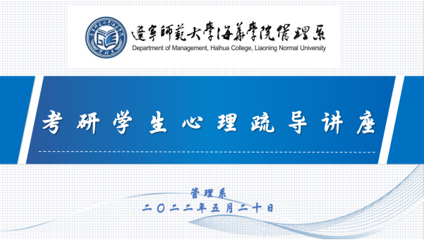 为切实做好校园常态化疫情防控工作,帮助管理系2019级考研学生缓解因疫情而产生的心理压力,进一步提升学生备战考研的心理调适能力,促进高效率、高质量的复习计划稳步开展。5月20日18时,管理系利用腾讯会议组织召开2019级考研学生心理疏导讲座。管理系主任栾美晨教授、教学副主任朱爱辉副教授、辅导员及2019级考研学生参加本次讲座。讲座由管理系学生工作负责人梁瑜主持。