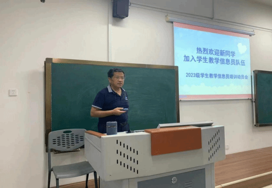 接下来由督导办主任梅显懋教授作了“2023级学生教学信息员培训、动员”的报告。梅主任就学生教学信息员应具备的素质要求、工作职责、信息反馈渠道、反馈内容、信息员的管理、信息员工作的重要意义和价值等做了细致地讲解。