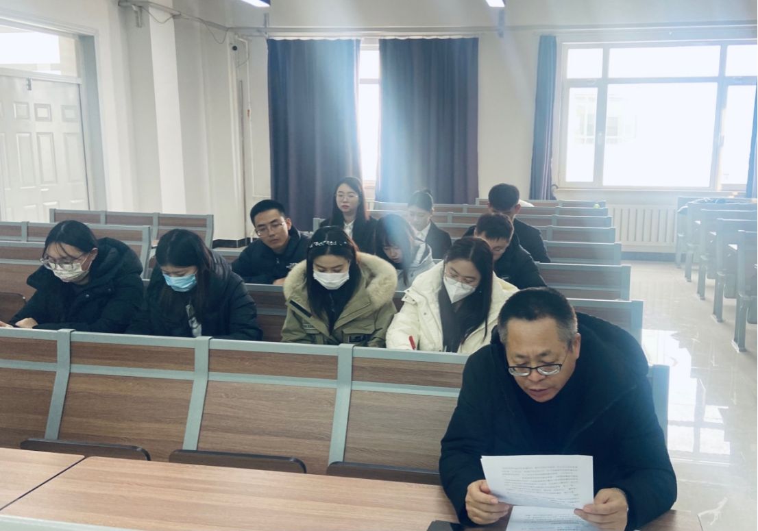 2023年12月13日下午,法律系党支部于5-307教室召开预备党员接收大会,讨论焦嘉鹏等3名发展对象接收为预备党员问题。本次会议由组织委员王允泽主持,支部全体党员参加。