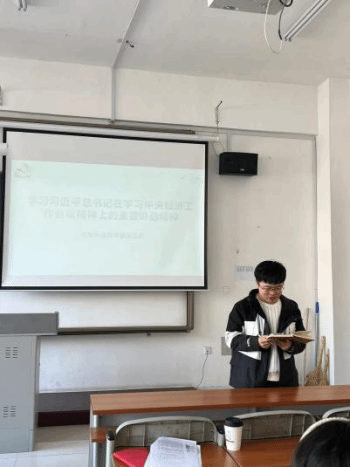 (4)由组织委员于晓宇代领全体党员学习习近平总书记在学习中央经济工作会议精神上的重要讲话精神。学习结束后,周弘扬同志进行交流发言:习近平在重要讲话中全面总结2023年经济工作,深刻分析当前经济形势,系统部署2024年经济工作。会议认为,近年来,在党中央坚强领导下,我们有效统筹国内国际两个大局、统筹疫情防控和经济社会发展、统筹发展和安全,深化了新时代做好经济工作的规律性认识。必须把坚持高质量发展作为新时代的硬道理,完整、准确、全面贯彻新发展理念,推动经济实现质的有效提升和量的合理增长。必须坚持深化供给侧结构性改革和着力扩大有效需求协同发力,发挥超大规模市场和强大生产能力的优势,使国内大循环建立在内需主动力的基础上,提升国际循环质量和水平。必须坚持依靠改革开放增强发展内生动力,统筹推进深层次改革和高水平开放,不断解放和发展社会生产力、激发和增强社会活力。必须坚持高质量发展和高水平安全良性互动,以高质量发展促进高水平安全,以高水平安全保障高质量发展,发展和安全要动态平衡、相得益彰。必须把推进中国式现代化作为最大的政治,在党的统一领导下,团结最广大人民,聚焦经济建设这一中心工作和高质量发展这一首要任务,把中国式现代化宏伟蓝图一步步变成美好现实。