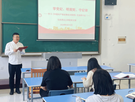 为进一步贯彻落实中共中央办公厅、辽宁省委和省教育工委、学校党委关于开展党纪学习教育的相关部署和安排,根据马克思主义学院关于开展党纪学习教育的实施方案要求,2024年5月15日马克思主义学院党支部在图书馆307教室开展学习《中国共产党纪律处分条例》交流探讨会。
